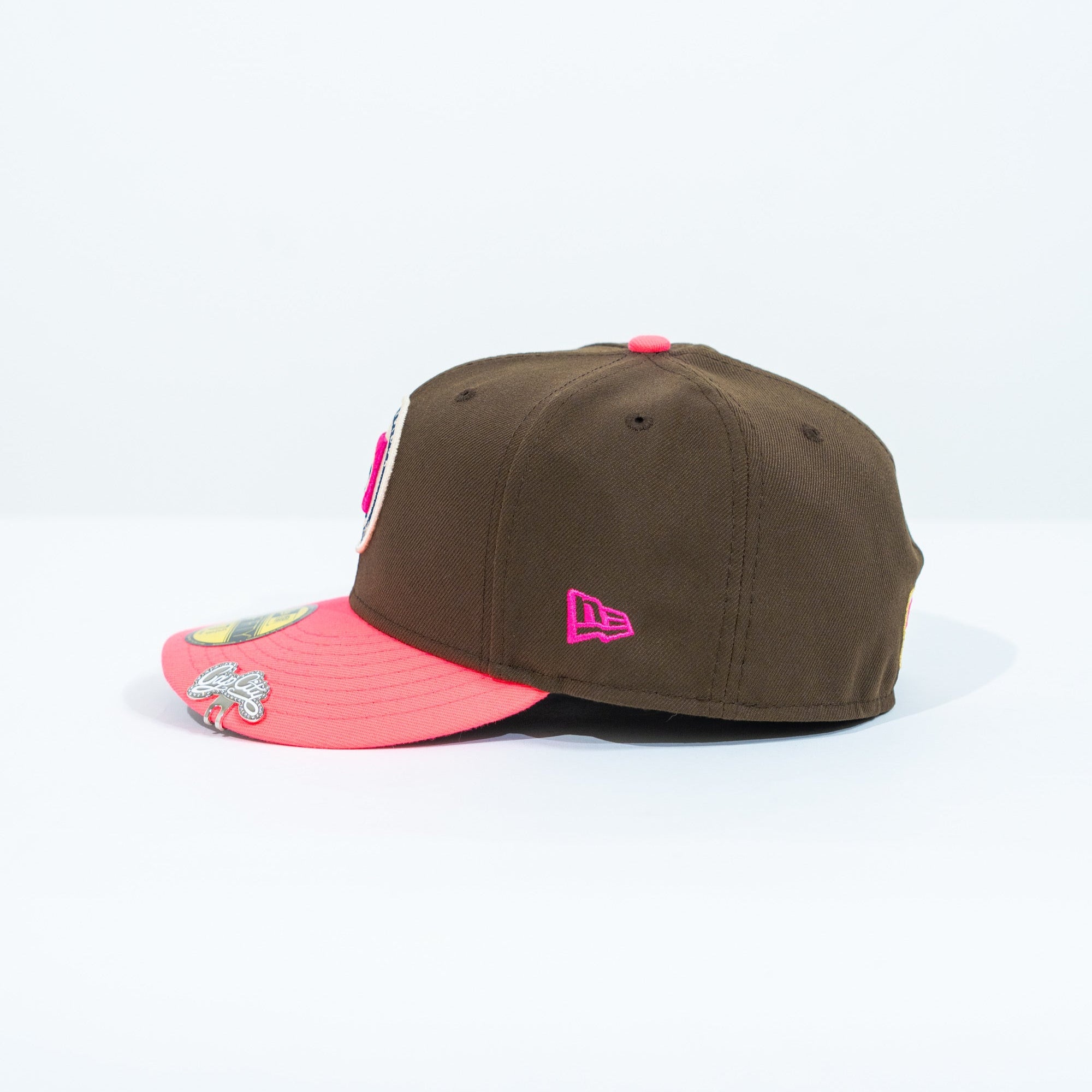 NEW ERA EXCLUSIVE 59FIFTY BROWN/ NEON PINK "CLUB CRUZ AZUL" W/ MEXICO FLAG SIDE PATCH