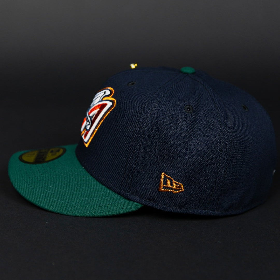 NEW ERA EXCLUSIVE 59FIFTY NAVY/ FOREST GREEN ANAHEIM ANGELS W/ 40TH ANNIVERSARY SIDE PATCH