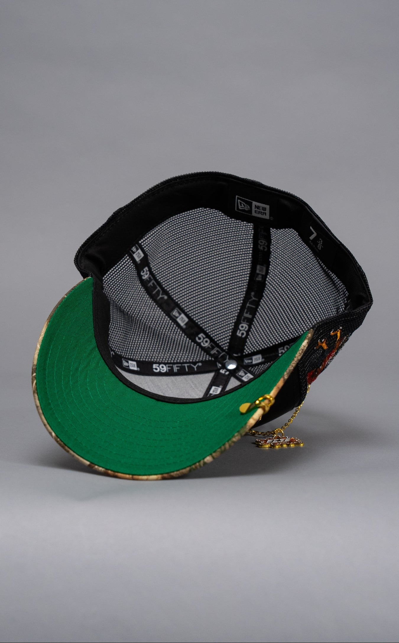 NEW ERA EXCLUSIVE 59FIFTY SATIN/REALTREE 2025 WBC MEXICO SCRIPT W/ EL GALLO SIDE PATCH