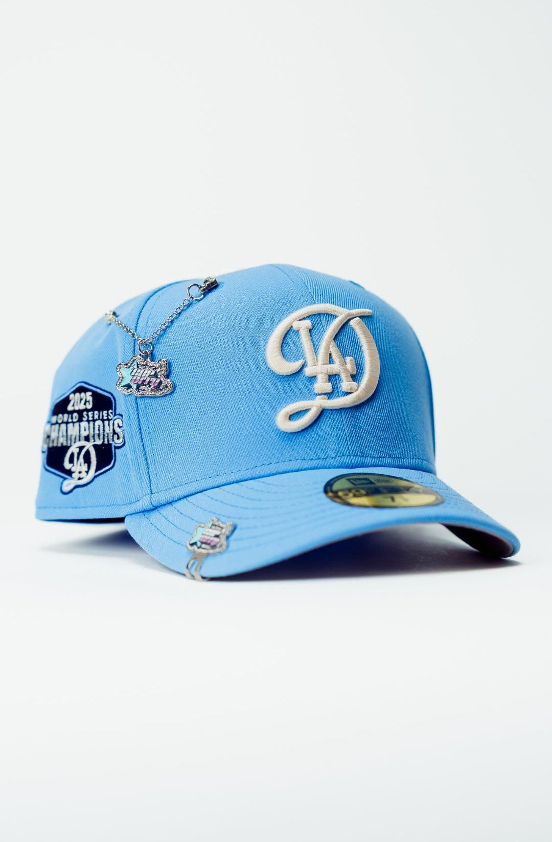 NEW ERA EXCLUSIVE 59FIFTY SKY BLUE LOS ANGELES DODGERS W/ 2025 WORLD SERIES CHAMPIONS SIDE PATCH