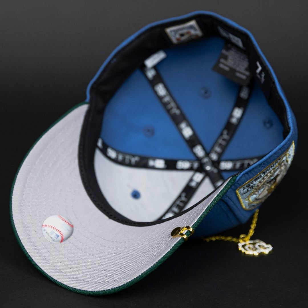 NEW ERA EXCLUSIVE 59FIFTY SKY BLUE/ PINE GREEN BALTIMORE ORIOLES W/ 30TH ANNIVERSARY SIDE PATCH