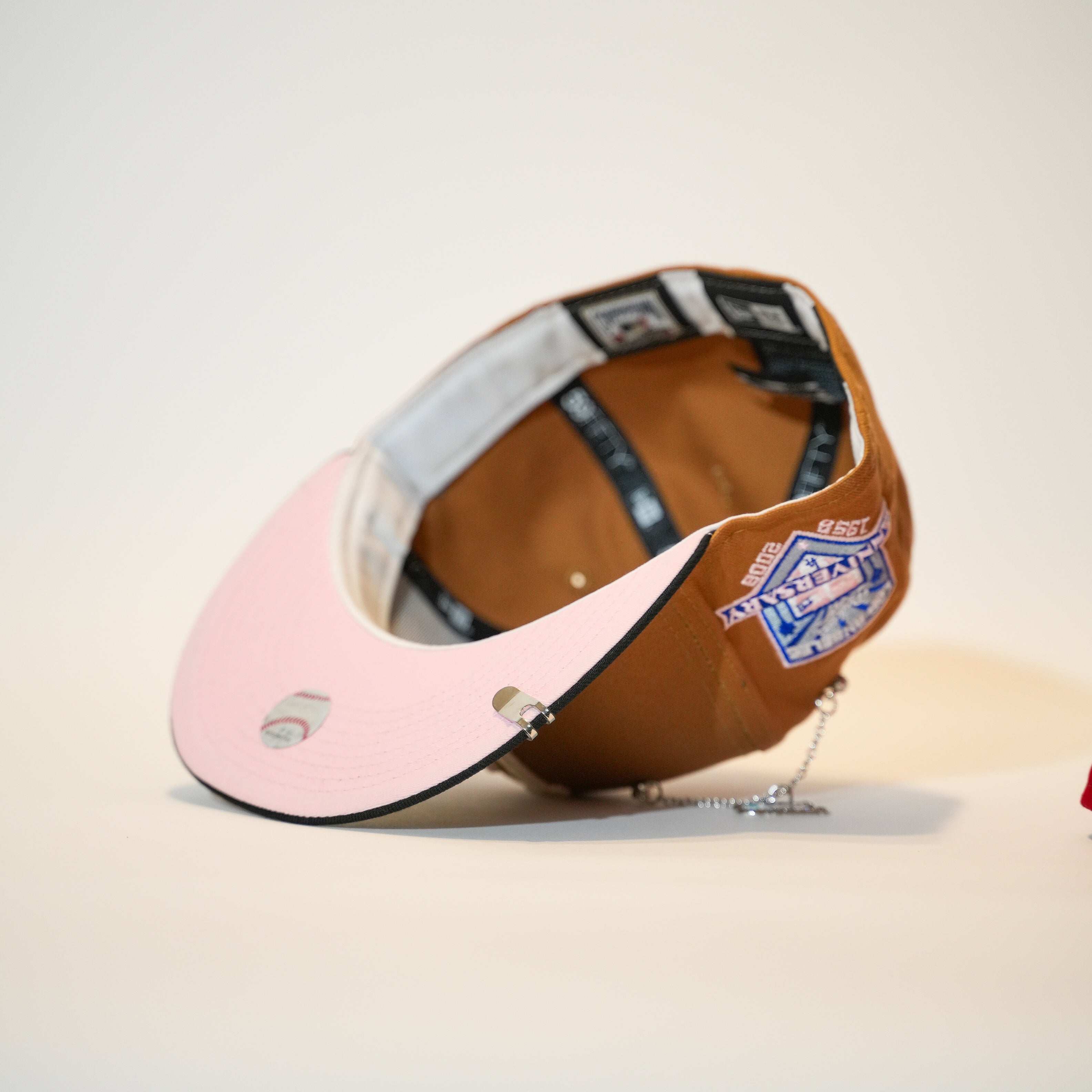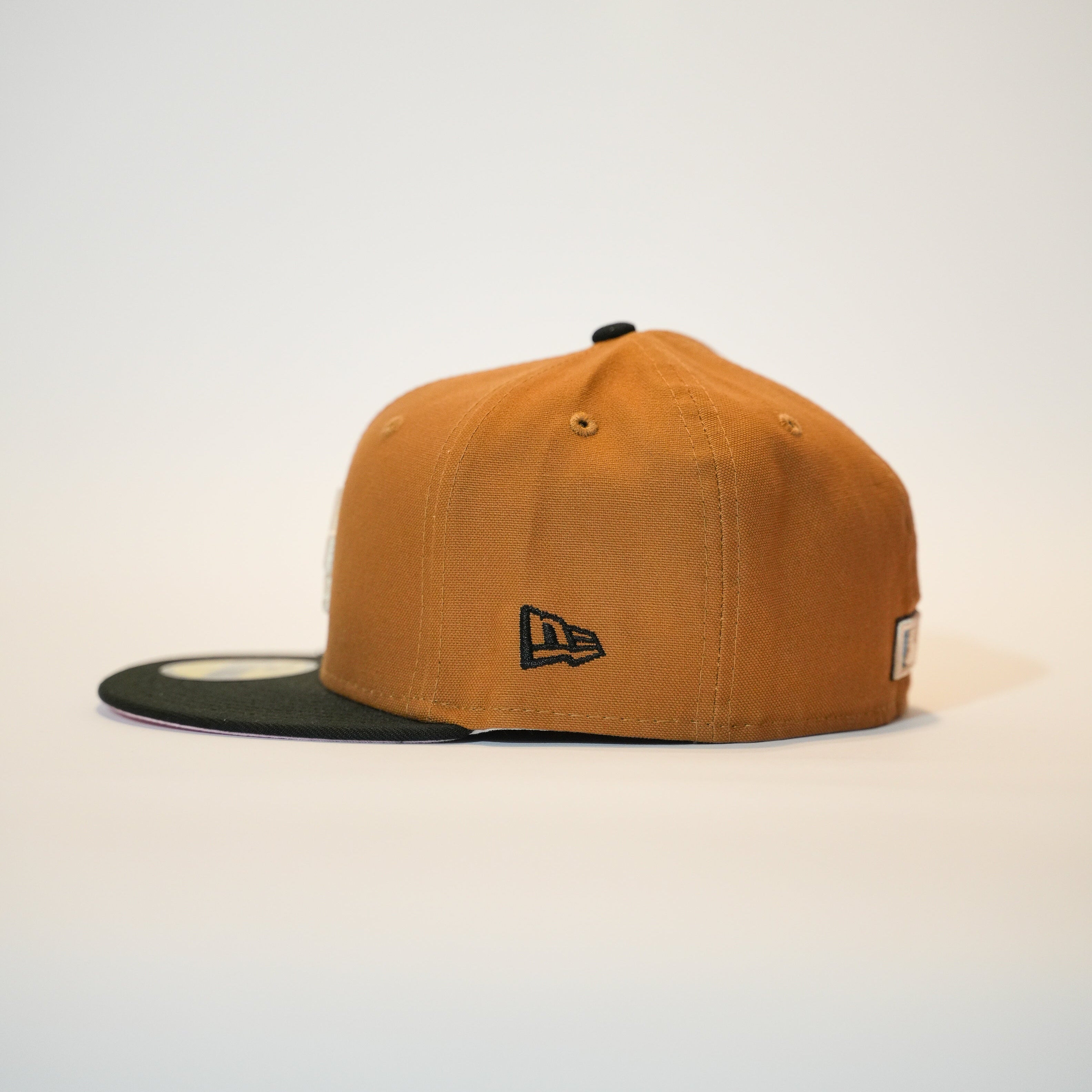 NEW ERA EXCLUSIVE 59FIFTY TAN/BLACK LOS ANGELES DODGERS W/ 50TH ANNIVERSARY SIDE PATCH