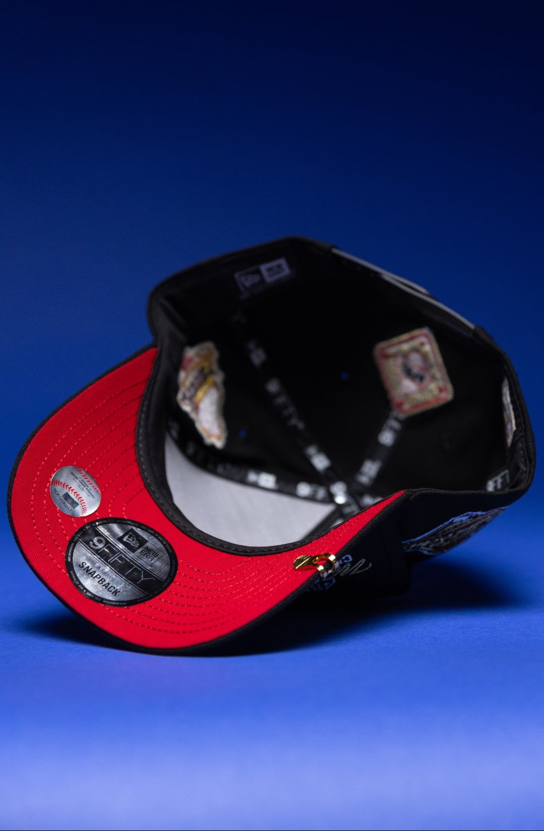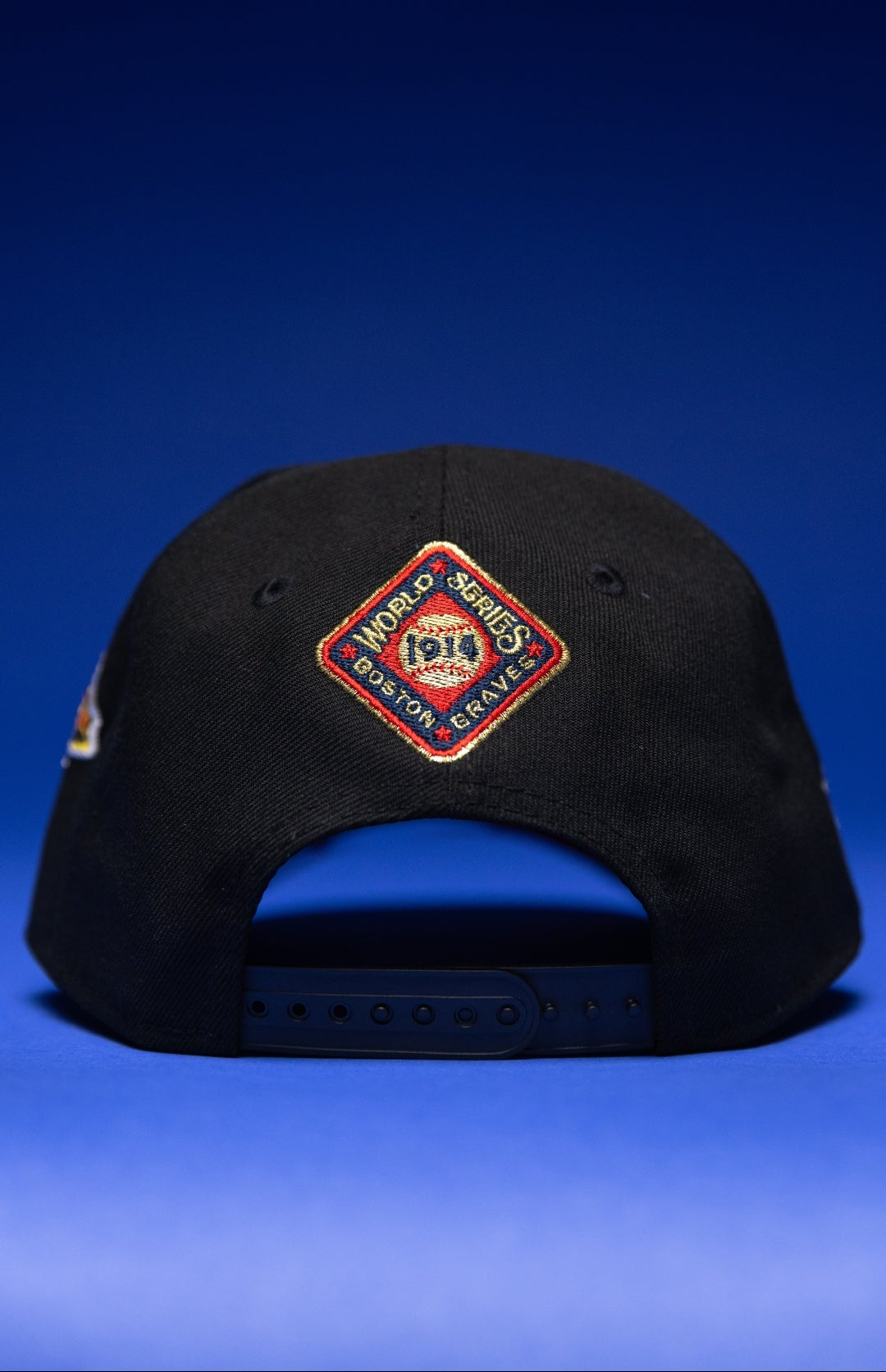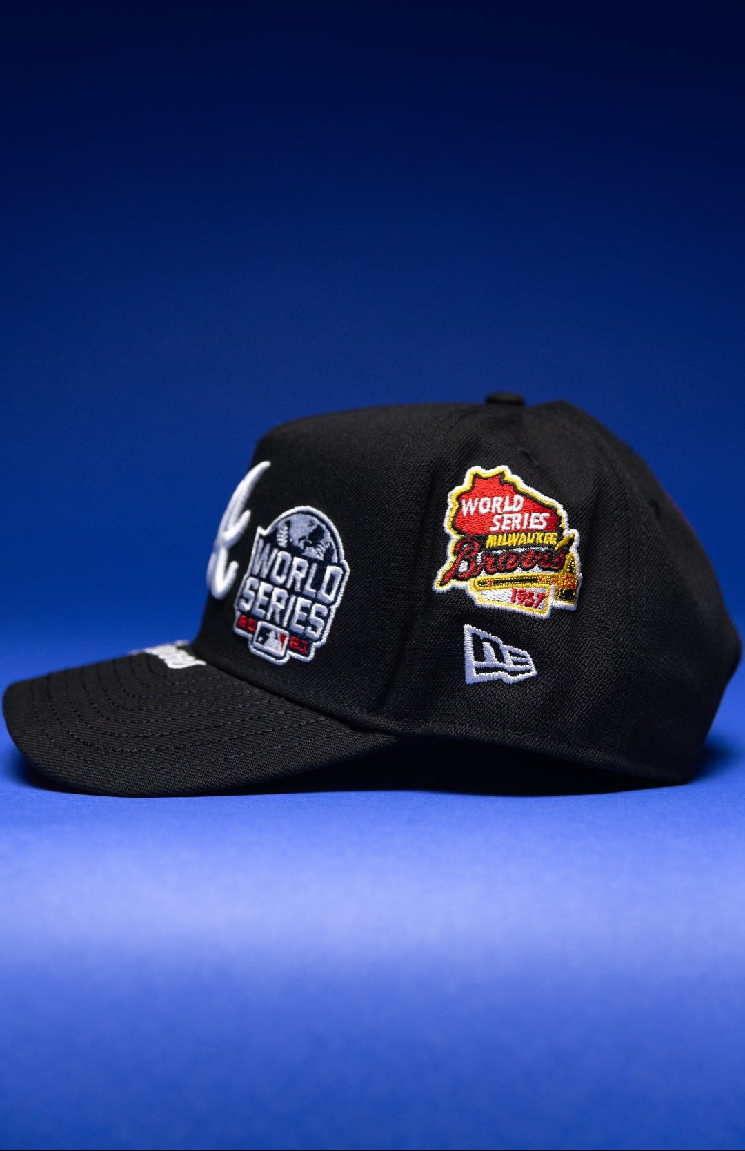 NEW ERA 9FIFTY A-FRAME BLACK ATLANTA BRAVES SNAPBACK W/ WORLD SERIES EMBROIDERY PATCHES