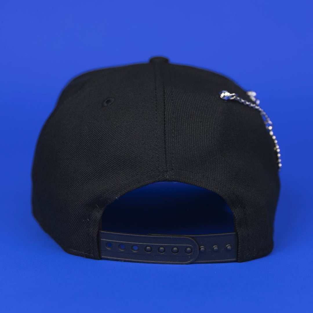 NEW ERA 9FIFTY A-FRAME BLACK CHICAGO CUBS SNAPBACK W/ "BE ALERT FOR FOUL BALLS" SIDE PATCH