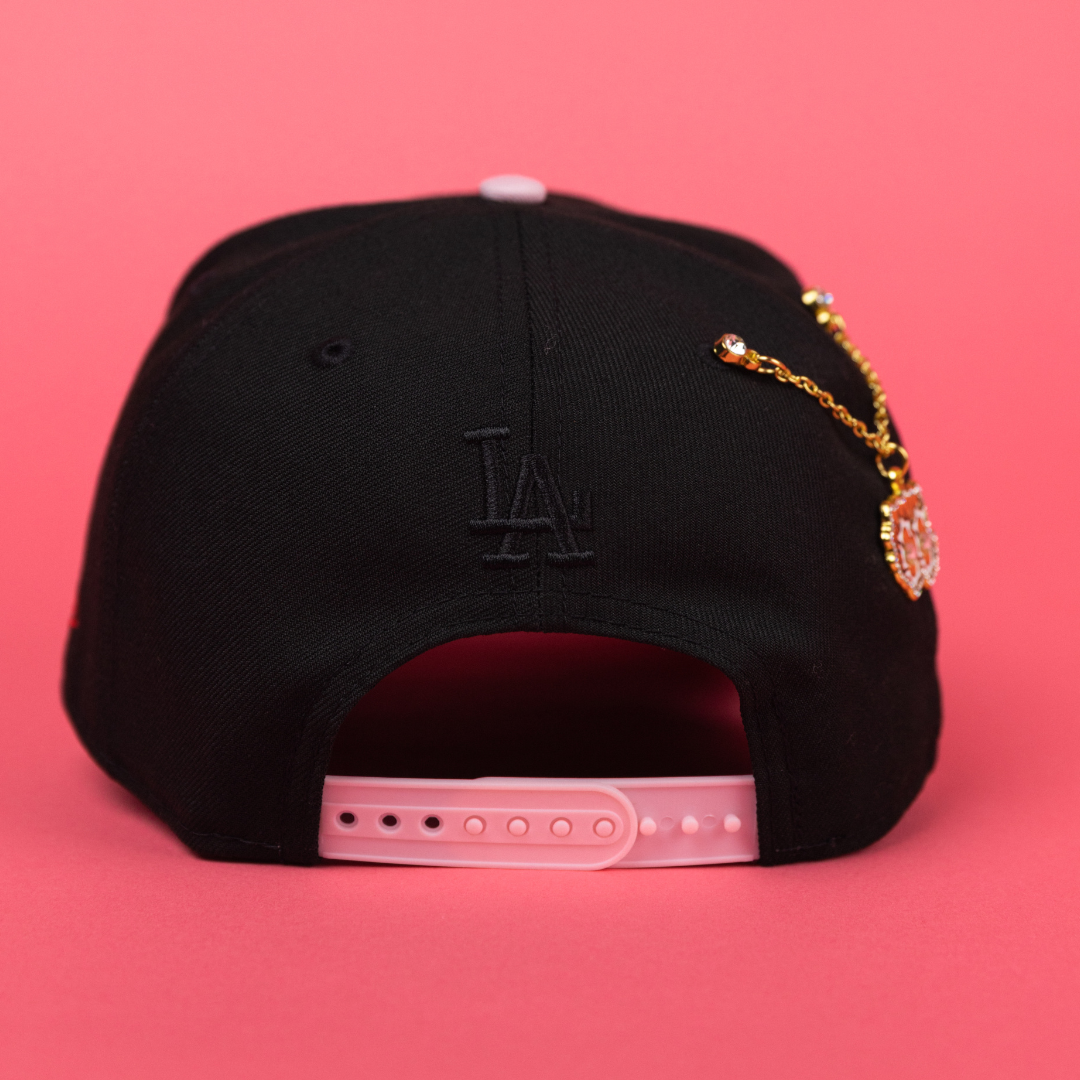 NEW ERA 9FIFTY A-FRAME BLACK/ PINK LOS ANGELES DODGERS JAPANESE SCRIPT W/ WORLD SERIES CHAMPIONS SIDE PATCH
