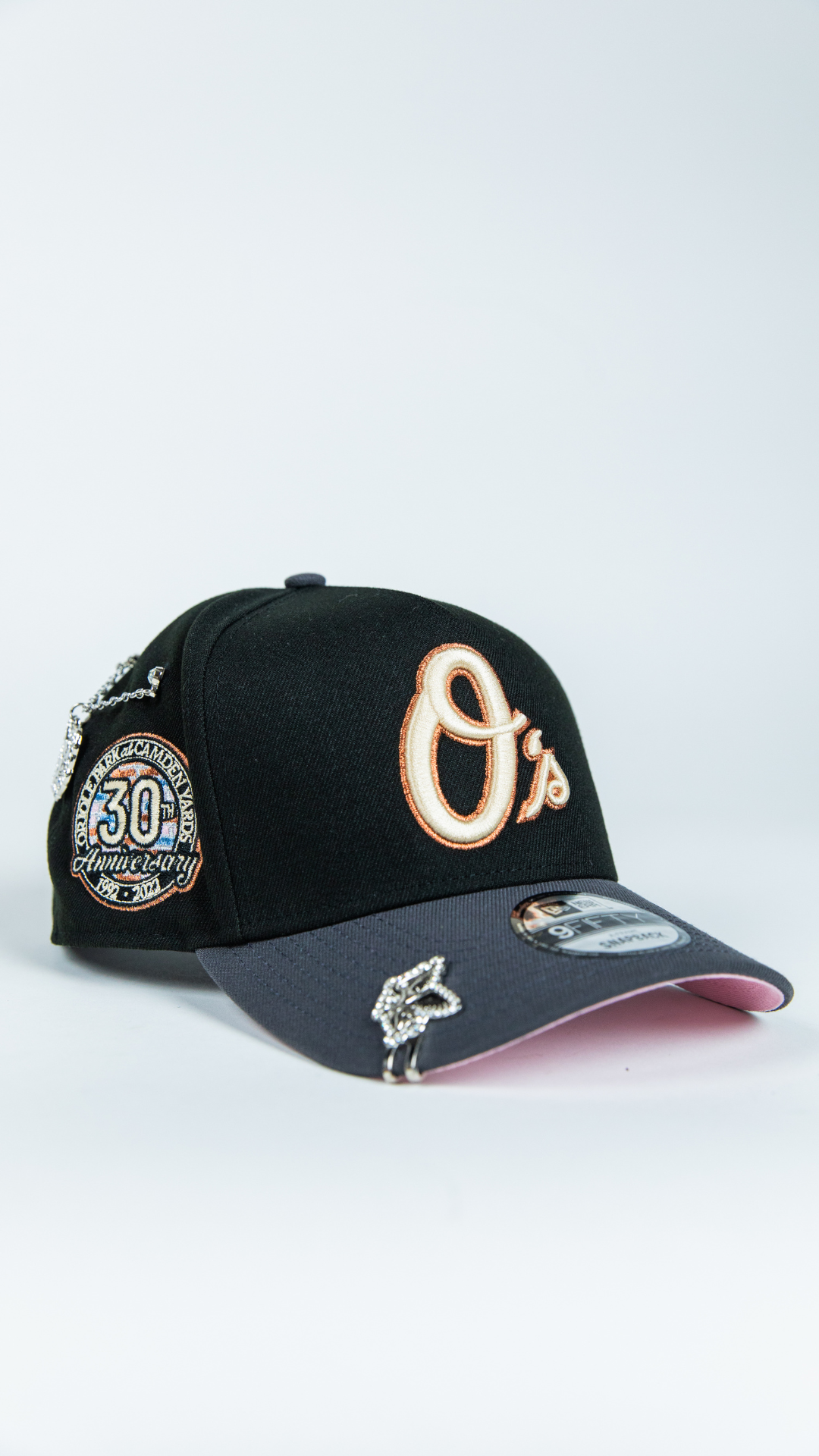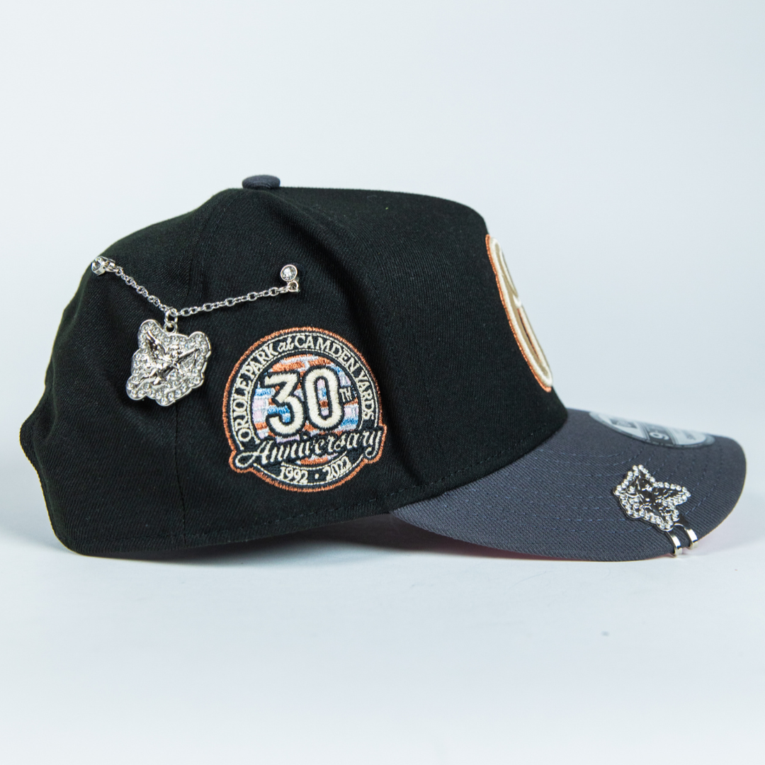 NEW ERA 9FIFTY A-FRAME BLACK/ GREY BALTIMORE ORIOLES W/ 30TH ANNIVERSARY SIDE PATCH