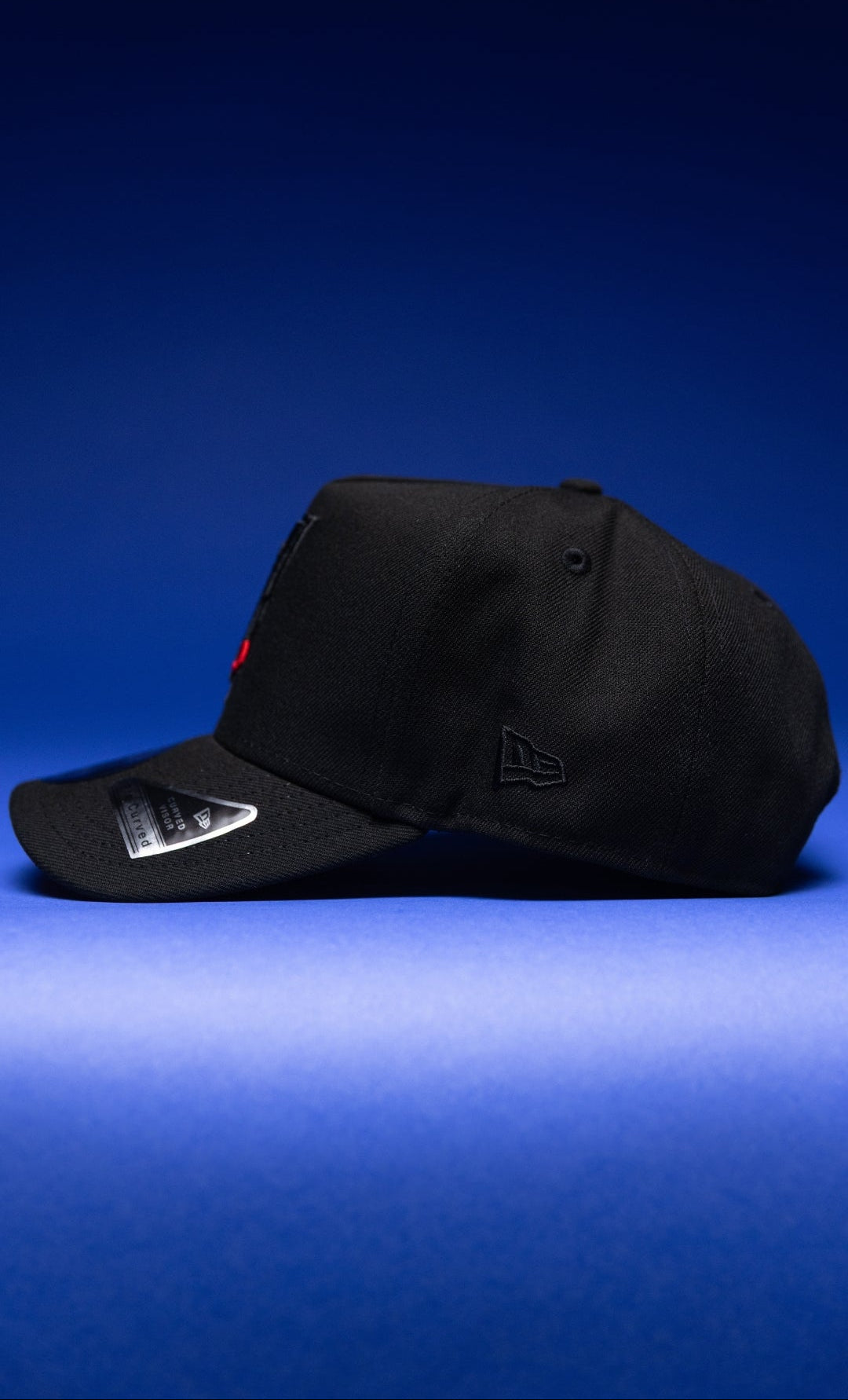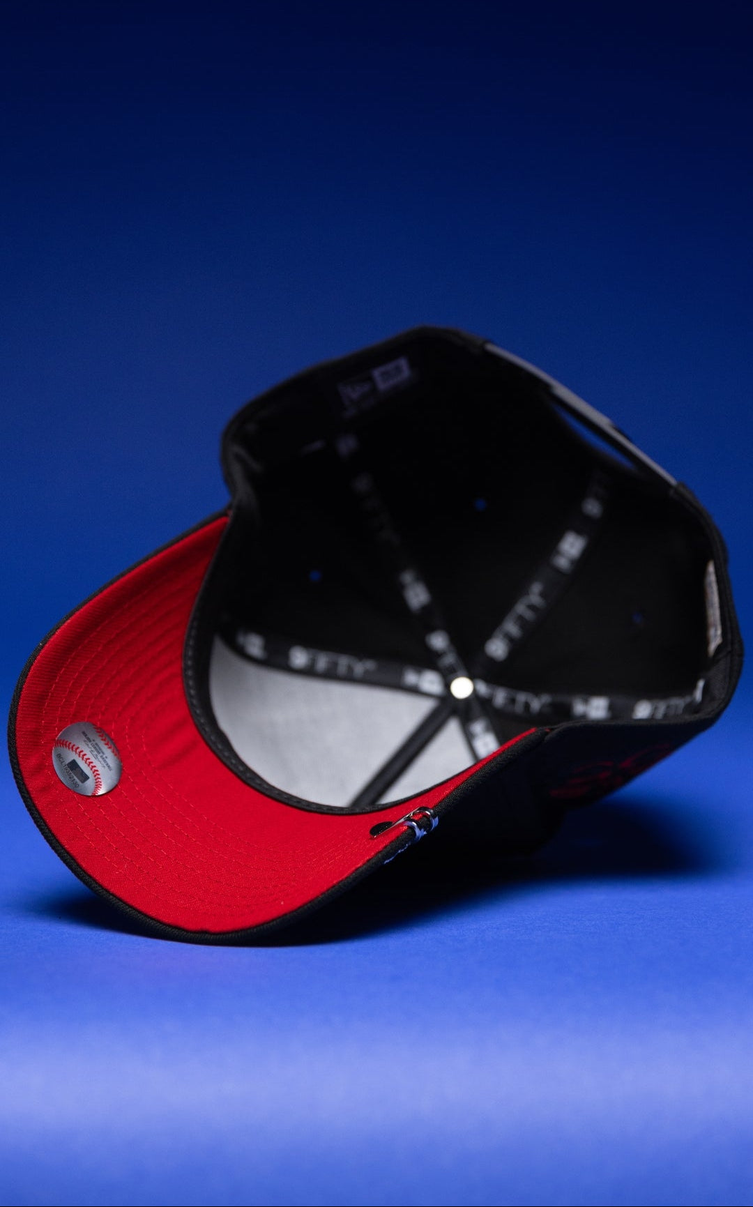 NEW ERA 9FIFTY A-FRAME BLACK UPSIDE DOWN ANAHEIM ANGELS SNAPBACK W/ 35TH ANNIVERSARY SIDE PATCH
