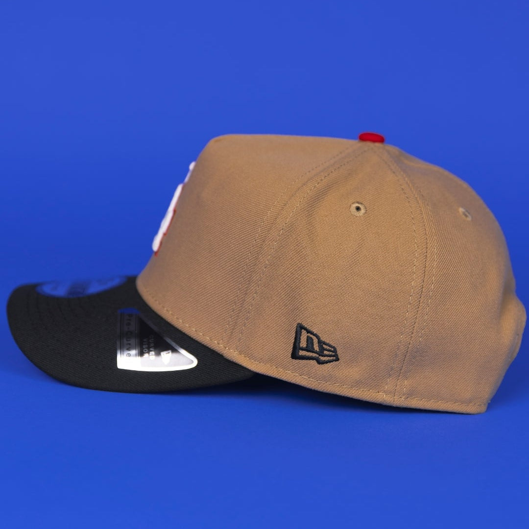 NEW ERA 9FIFTY A-FRAME CAMEL BROWN LOS ANGELES DODGERS SNAPBACK W/ 40TH ANNIVERSARY SIDE PATCH