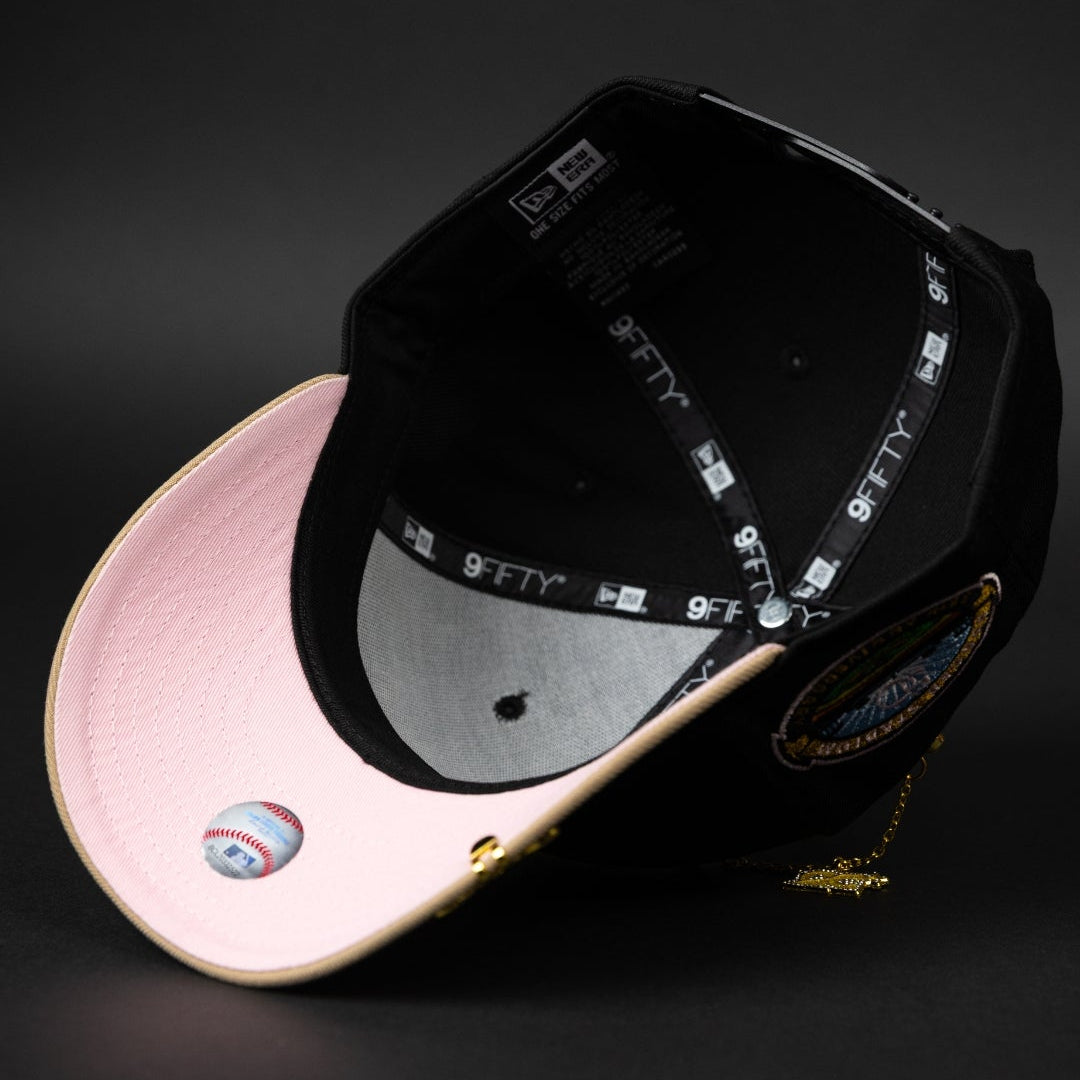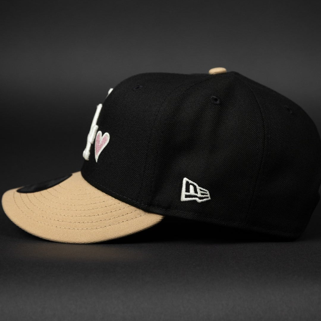 NEW ERA EXCLUSIVE 9FIFTY BACK/ BEIGE LOS ANGELES DODGERS SNAPBACK W/ PINK HEART + 50TH ANNIVERSARY SIDE PATCH