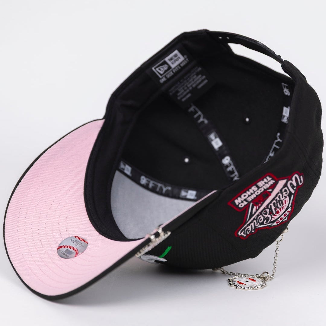 NEW ERA EXCLUSIVE 9FIFTY BLACK ATLANTA BRAVES SNAPBACK W/ PINK ROSE + 1995 WORLD SERIES SIDE PATCH