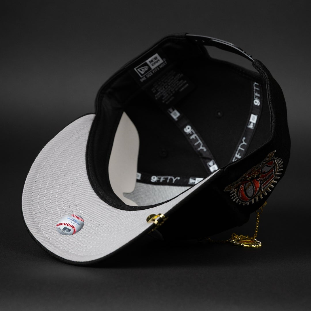 NEW ERA EXCLUSIVE 9FIFTY BLACK BALTIMORE ORIOLES SNAPBACK W/ 50TH ANNIVERSARY PATCH