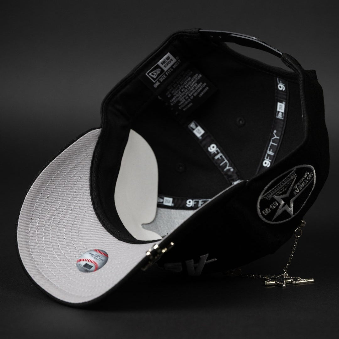 NEW ERA EXCLUSIVE 9FIFTY BLACK HOUSTON ASTROS SCRIPT SNAPBACK W/ 35 GREAT YEARS SIDE PATCH