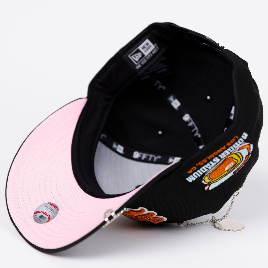 NEW ERA EXCLUSIVE 9FIFTY BLACK LOS ANGELES DODGERS SCRIPT SNAPBACK W/ DODGER STADIUM SIDE PATCH