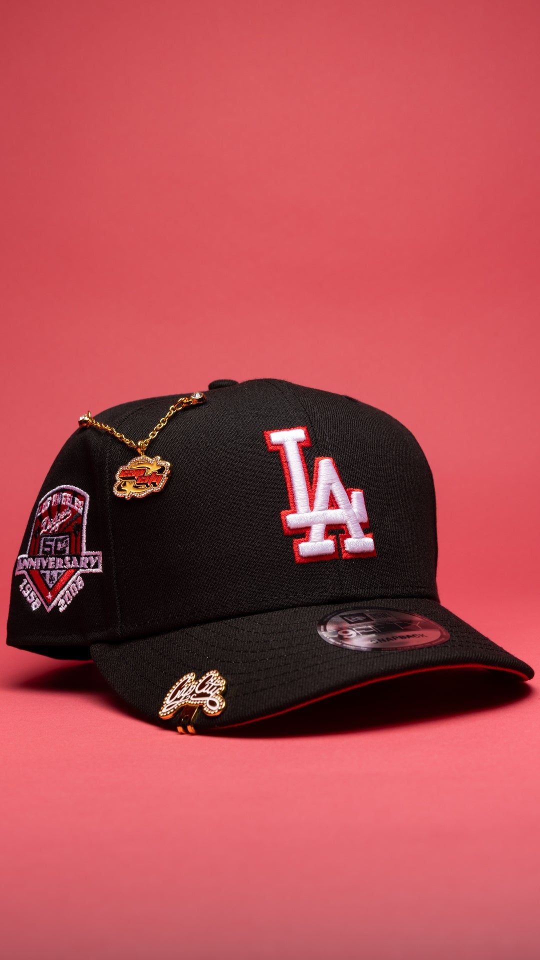 NEW ERA EXCLUSIVE 9FIFTY BLACK LOS ANGELES DODGERS SNAPBACK W/ 50TH ANNIVERSARY SIDE PATCH