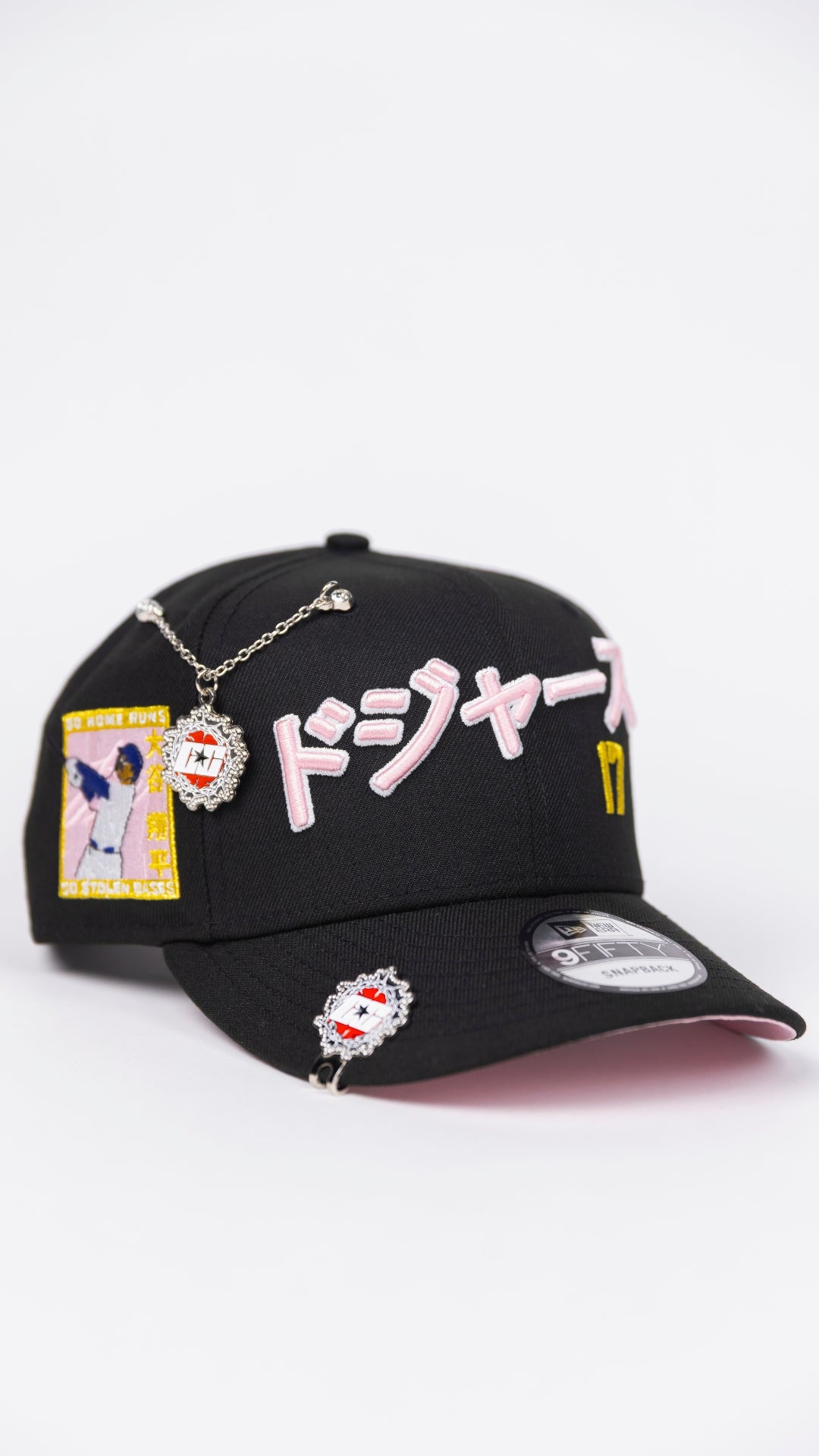 NEW ERA EXCLUSIVE 9FIFTY BLACK LOS ANGELES DODGERS SNAPBACK W/ JAPANESE SCRIPT + SHOHEI OHTANI 50-50 CLUB SIDE PATCH