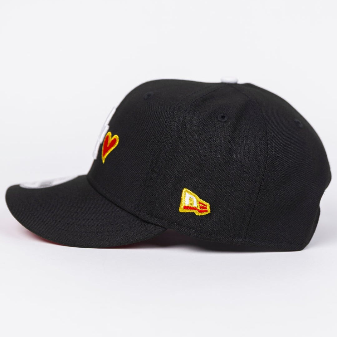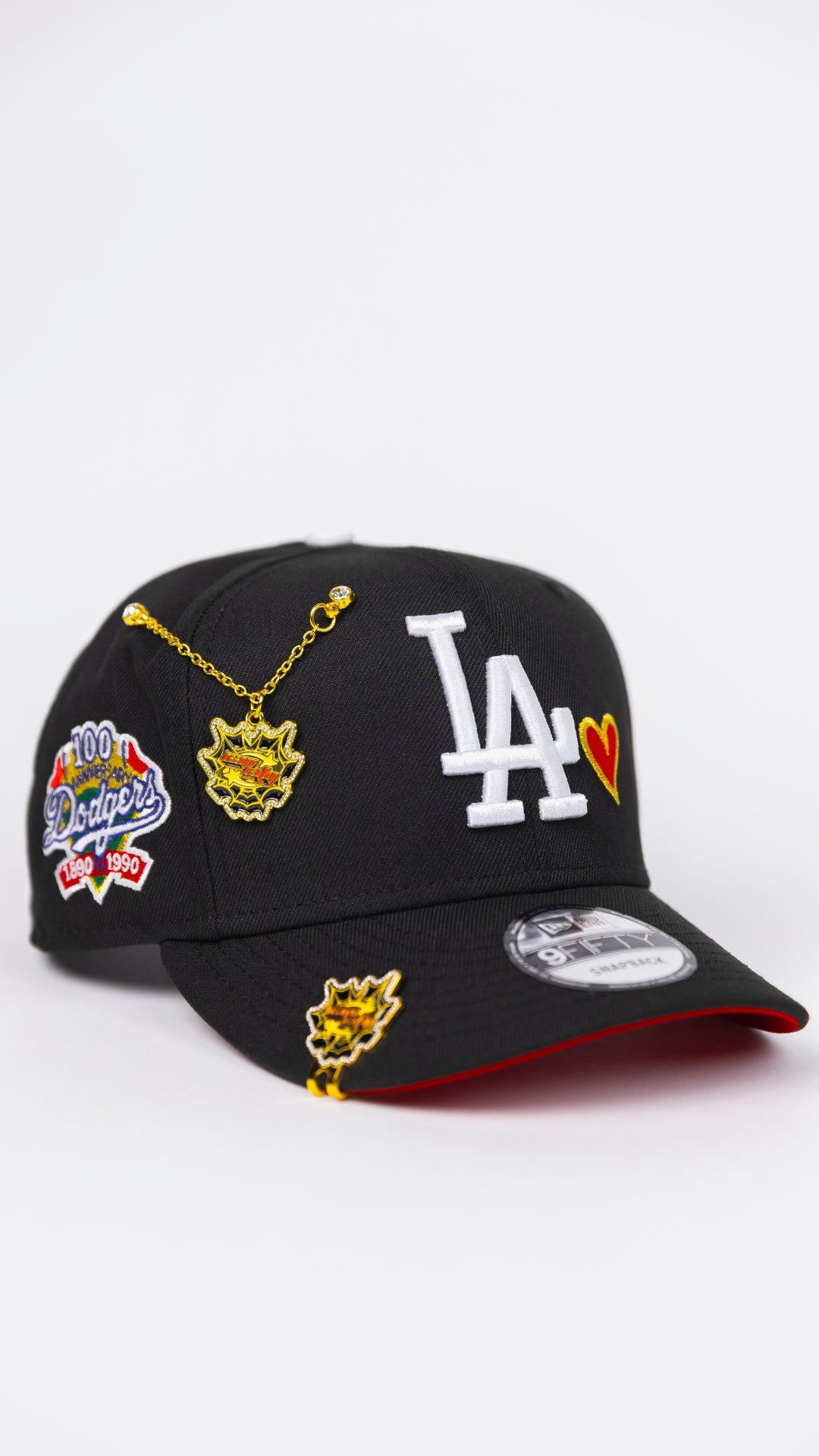 NEW ERA EXCLUSIVE 9FIFTY BLACK LOS ANGELES DODGERS SNAPBACK W/ RED HAERT + 100TH ANNIVERSARY SIDE PATCH