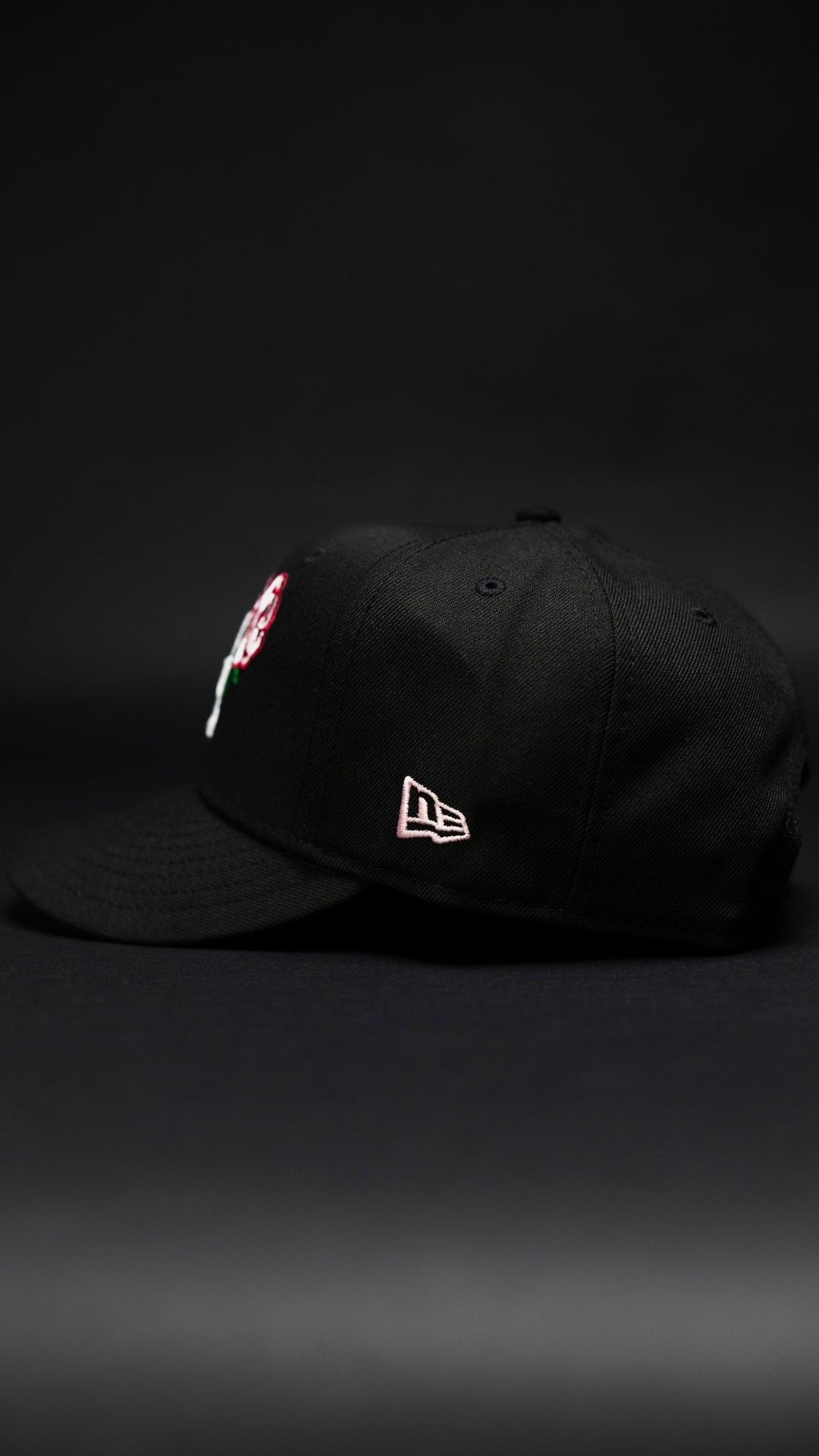 NEW ERA EXCLUSIVE 9FIFTY BLACK LOS ANGELES DODGERS SNAPBACK W/ ROSE + WORLD SERIES CHAMPIONS SIDE PATCH
