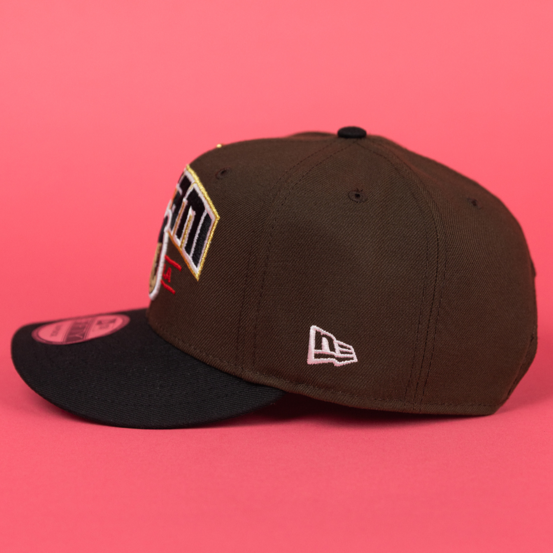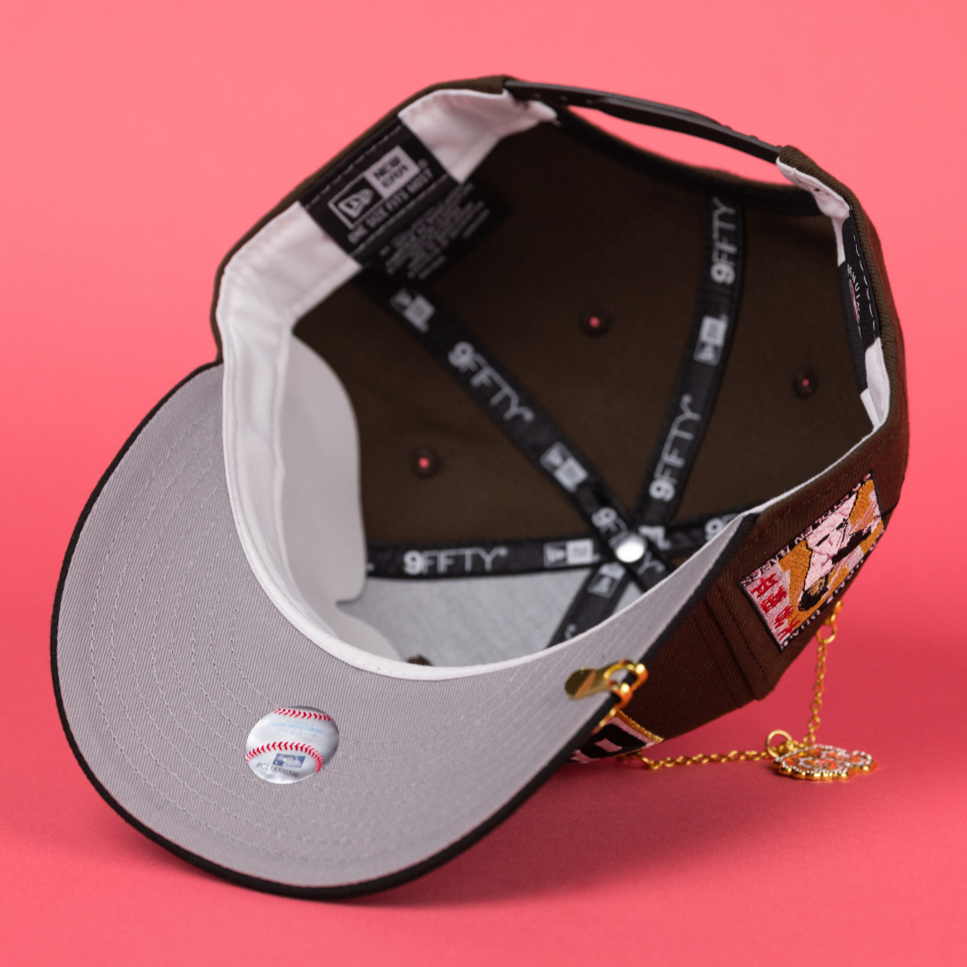 NEW ERA EXCLUSIVE 9FIFTY BROWN/ BLACK LOS ANGELES DODGERS SNAPBACK W/ SHOHEI OHTANI SCRIPT + 50-50 CLUB SIDE PATCH