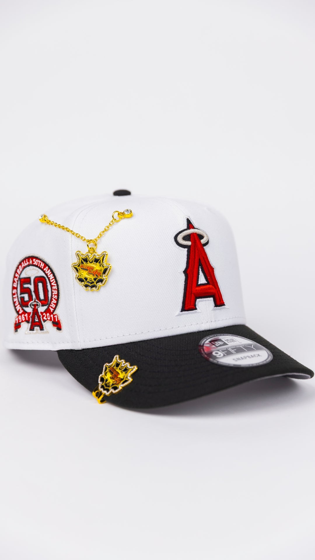 NEW ERA EXCLUSIVE 9FIFTY PEARL WHITE ANAHEIM ANGELS SNAPBACK W/ 50TH ANNIVERSARY SIDE PATCH