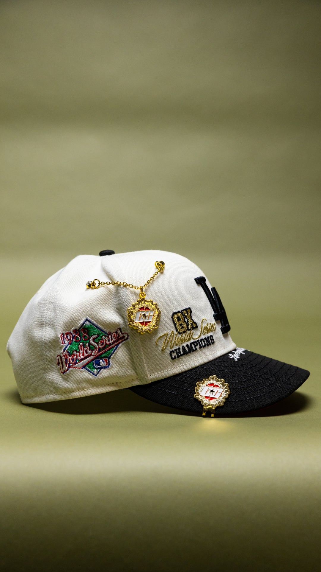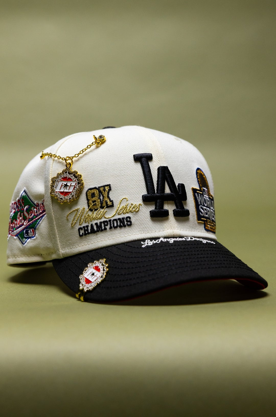 NEW ERA EXCLUSIVE 9FIFTY CHROME/BLACK LOS ANGELES DODGERS SNAPBACK W/ WORLD SERIES EMBROIDERY PATCHES