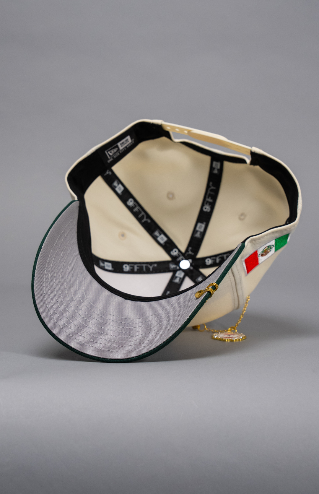 NEW ERA EXCLUSIVE 9FIFTY CHROME/FOREST GREEN MEXICO 2025 WORLD BASEBALL CLASSIC SNAPBACK W/ MEXICO FLAG SIDE PATCH