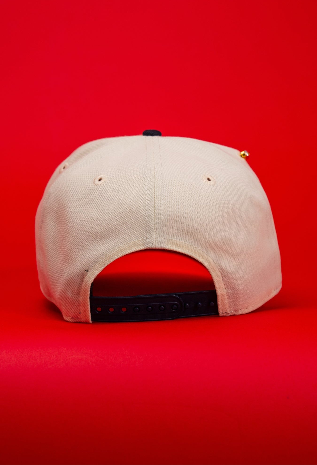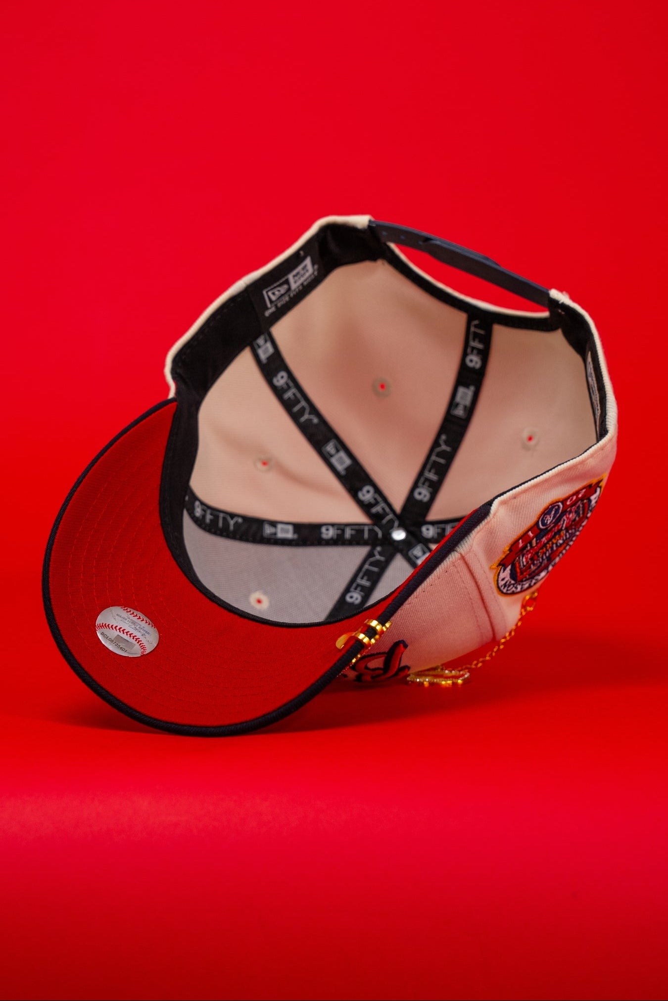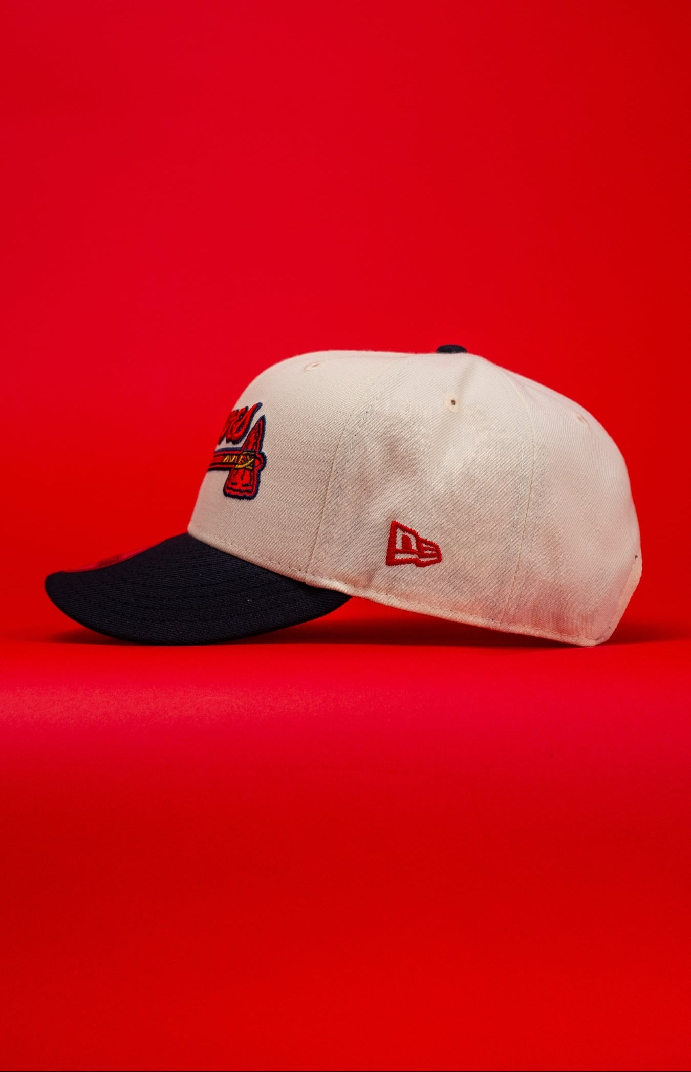 NEW ERA EXCLUSIVE 9FIFTY CHROME/NAVY ATLANTA BRAVES SCRIPT SNAPBACK W/ 2017 INAUGURAL SEASON SIDE PATCH