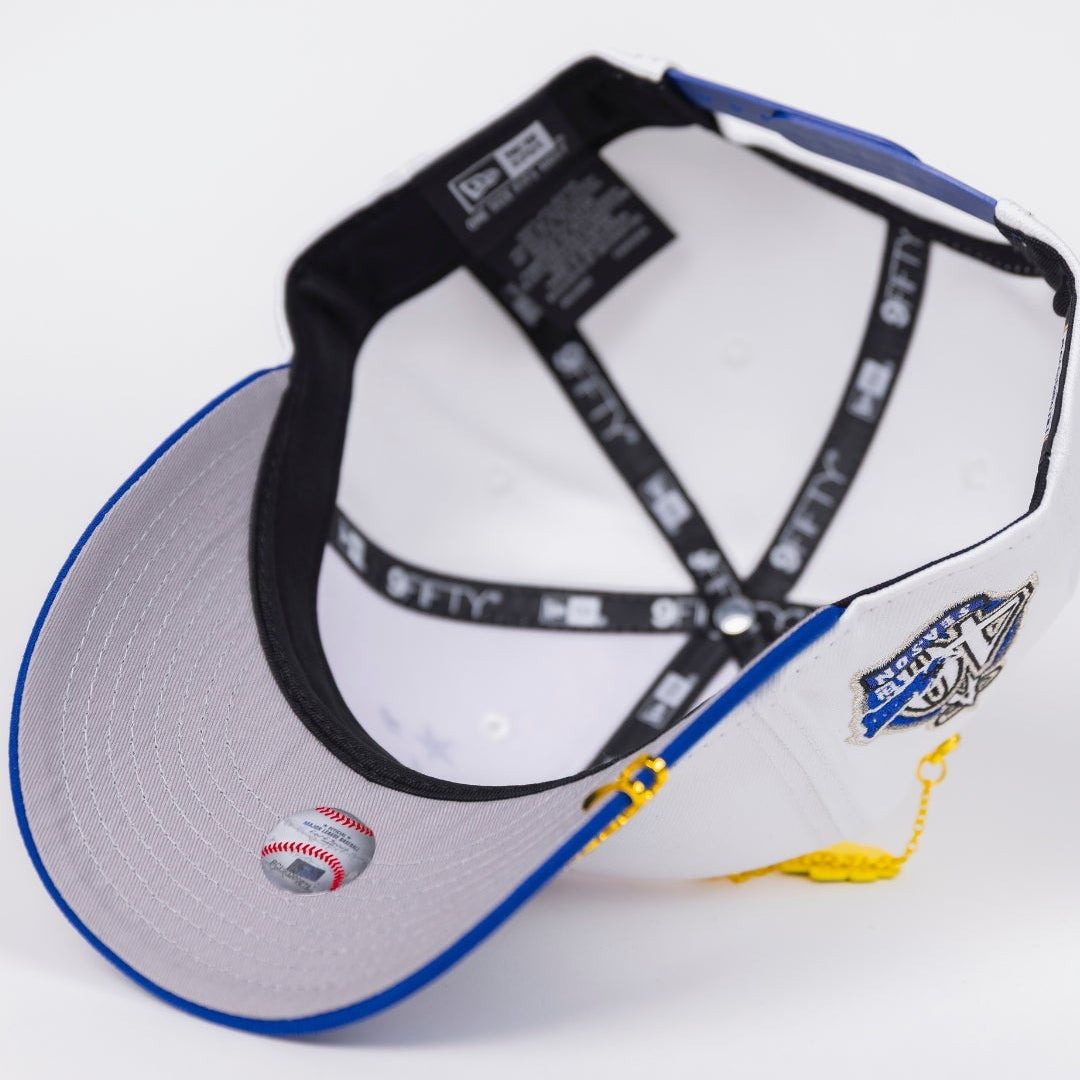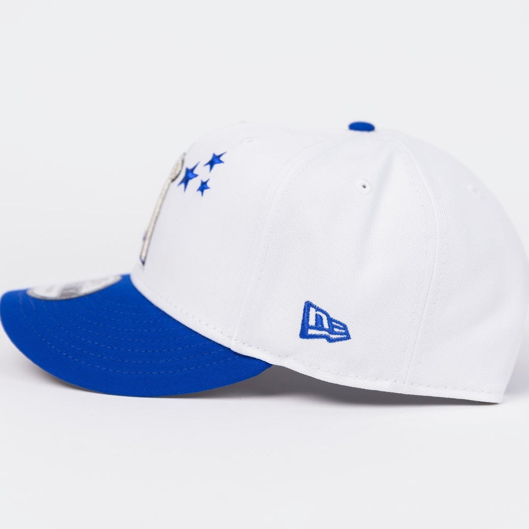 NEW ERA EXCLUSIVE 9FIFTY PEARL WHITE/ BLUE ANAHEIM ANGELS SNAPBACK W/ STARS + 40TH ANNIVERSARY SIDE PATCH