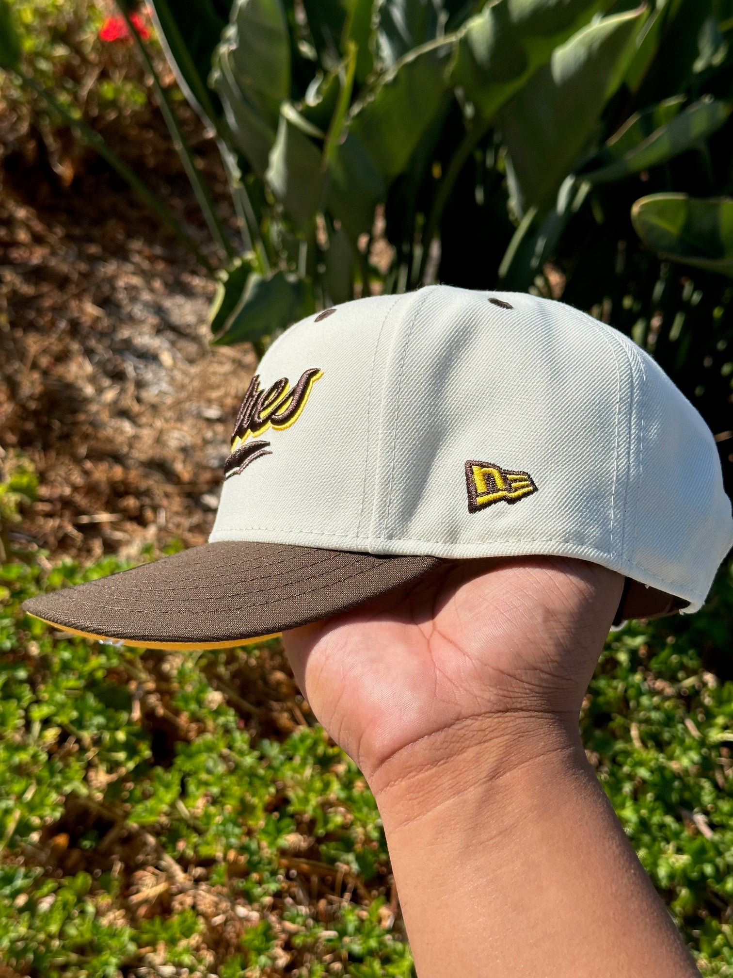 NEW ERA EXCLUSIVE 9FIFTY CHROME WHITE/WALNUT SAN DIEGO PADRES SCRIPT SNAPBACK W/ 40TH ANNIVERSARY SIDE PATCH