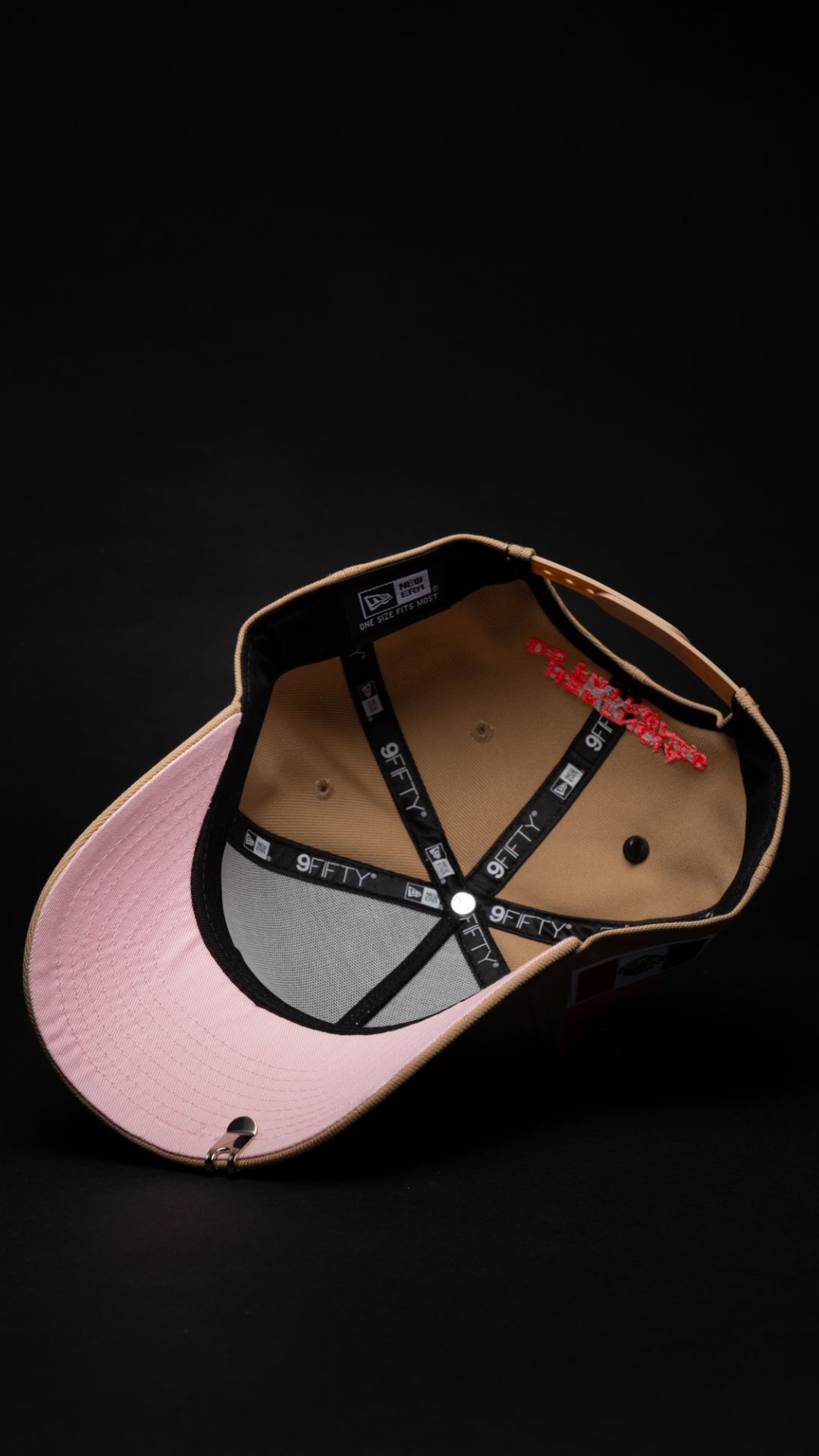 NEW* HERENCIA DE PATRONES x NEW ERA x CAP CITY BEIGE "CLIKA" 9FIFTY A-FRAME W/ MEXICAN FLAG SIDE PATCH -FREE BLIP INCLUDED