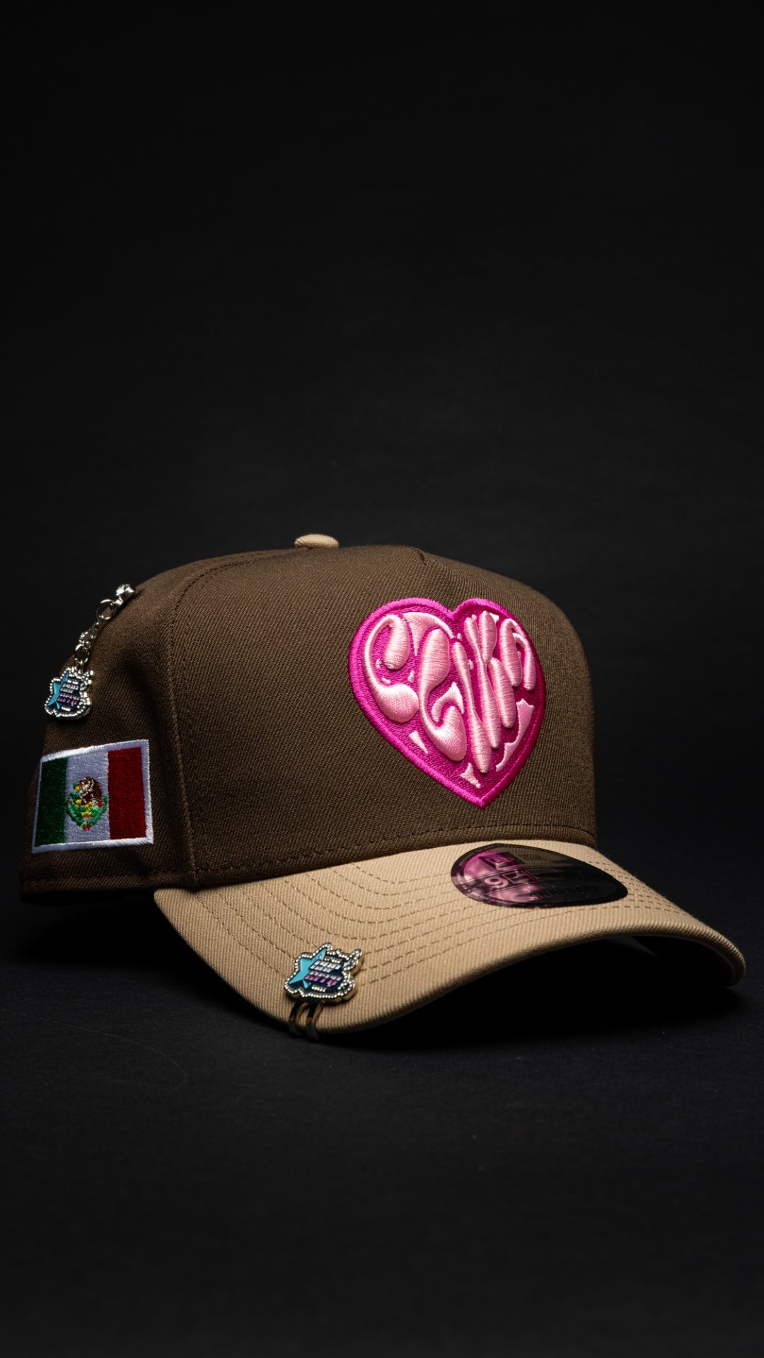 NEW* HERENCIA DE PATRONES x NEW ERA x CAP CITY BROWN/BEIGE "CLIKA" 9FIFTY A-FRAME W/ MEXICAN FLAG SIDE PATCH -FREE BLIP INCLUDED