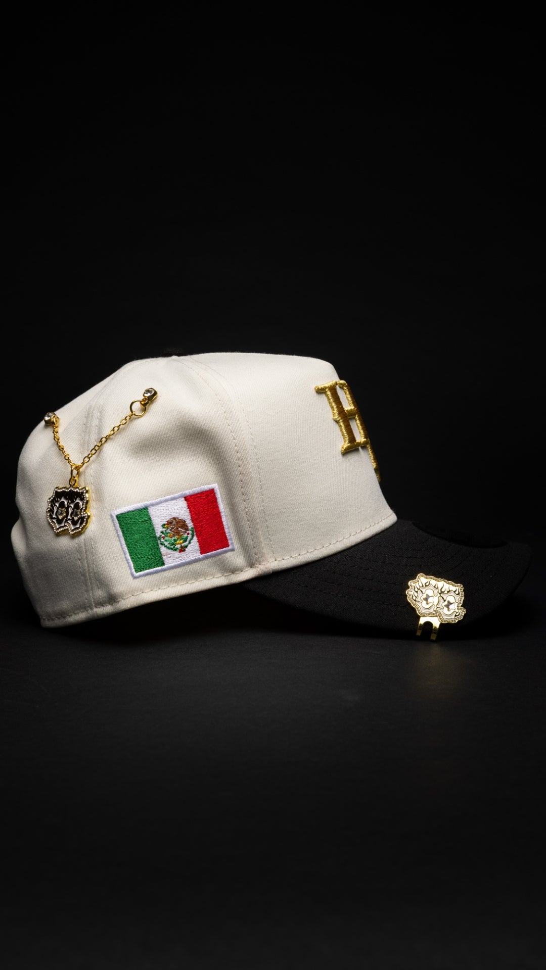 NEW* HERENCIA DE PATRONES x NEW ERA x CAP CITY WHITE/BLACK "HERENCIA LOGO" 9FIFTY A-FRAME W/ MEXICAN FLAG SIDE PATCH -FREE BLIP INCLUDED